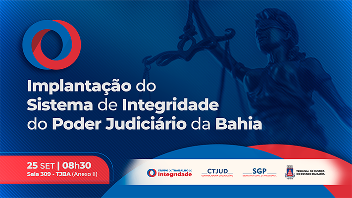 Acontece nesta quinta-feira (25), às 8h30, na sala 309 do Anexo II do Tribunal de Justiça da Bahia (TJBA), o evento de implantação do Sistema de Integridade do Poder Judiciário da Bahia.
