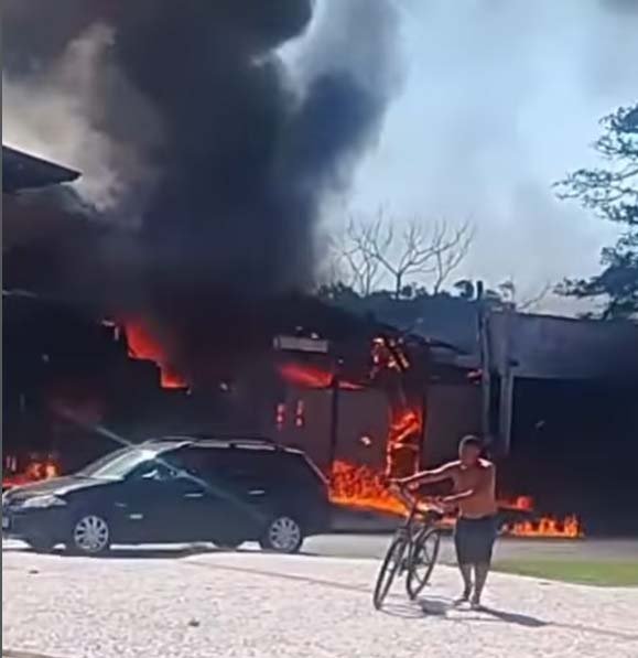 O incêndio foi controlado, e o local entrou em fase de rescaldo.