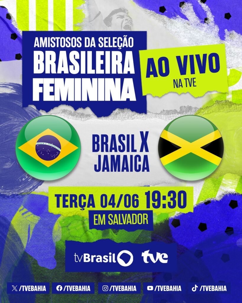 Nesta terça-feira (4), na Arena Fonte Nova, em Salvador, a TVE exibe, ao vivo, a partir das 19h30, o amistoso da Seleção Brasileira Feminina de Futebol, que disputa a bola com a seleção da Jamaica.