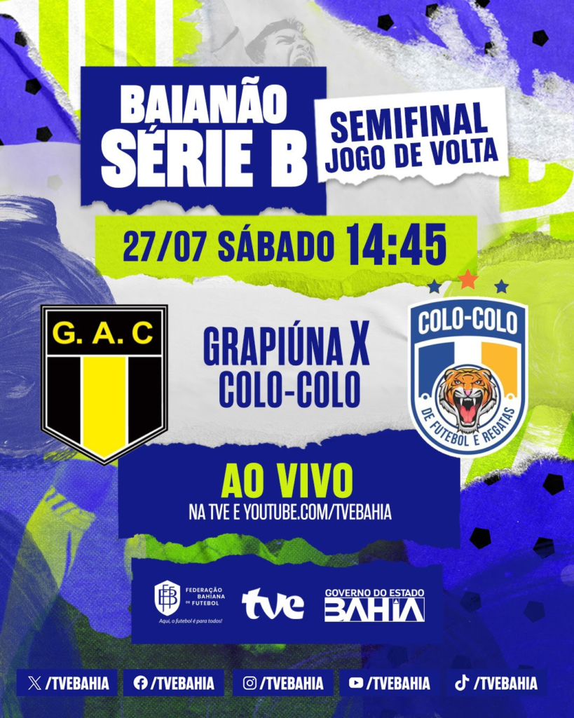 | Chegou a hora de conhecer os dois times que disputarão a Série A do Campeonato Baiano em 2025. Neste final de semana a TVE transmite ao vivo os jogos de volta das semifinais da segunda divisão do Baianão. Porto, Fluminense de Feira, Colo Colo e Grapiúna se enfrentam para garantir as duas vagas da Série A do campeonato no próximo ano. Neste sábado, 27, jogam Grapiúna e Colo Colo, e no domingo, 28, o Fluminense de Feira recebe o Porto. As transmissões acontecem a partir das 14h45 (pré-jogo) direto do Estádio Joia da Princesa, em Feira de Santana. No jogo de ida o Colo Colo venceu o Grapiúna por 1 a 0, e com esse resultado o Grapiúna precisa vencer no jogo de volta por, no mínimo, dois gols de diferença para conseguir a vaga na final. Enquanto isso, o Tigrão de Ilhéus joga por um empate para chegar à decisão. Em caso de vitória do Grapiúna por um gol de vantagem, a vaga será decidida nos pênaltis. O Fluminense vai tentar reverter, agora em casa, o 2 a 1 sofrido no jogo de ida. Já o Porto, clube do sul do estado, busca manter a vantagem alcançada na partida inicial da semifinal. As coberturas terão narração de Valter Lima e Rainan Peralva, com comentários de Rodrigo Araújo, e reportagem de Juliana Lisboa e Juraci Santana. Tem ainda conteúdos exclusivos no Instagram.com/tvebahia, tiktok.com/@tvebahia, facebook.com/tvebahia e Twitter.com/tvebahia. Os torcedores poderão participar também pelo WhatsApp 71 99626 0307. Os programas TVE Esporte (segunda-feira, às 19h), TVE Revista (diariamente às 12h) e TVE Notícias (diariamente às 18h30) fazem a cobertura especial da competição. |