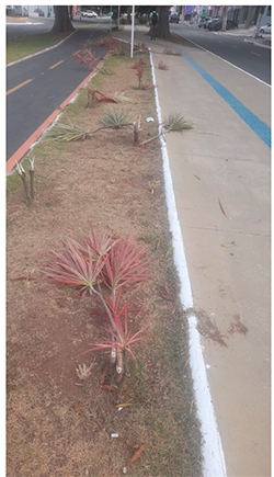 Vândalos quebram árvores, lixeiras, e arrancam plantas na Avenida Olívia Flores