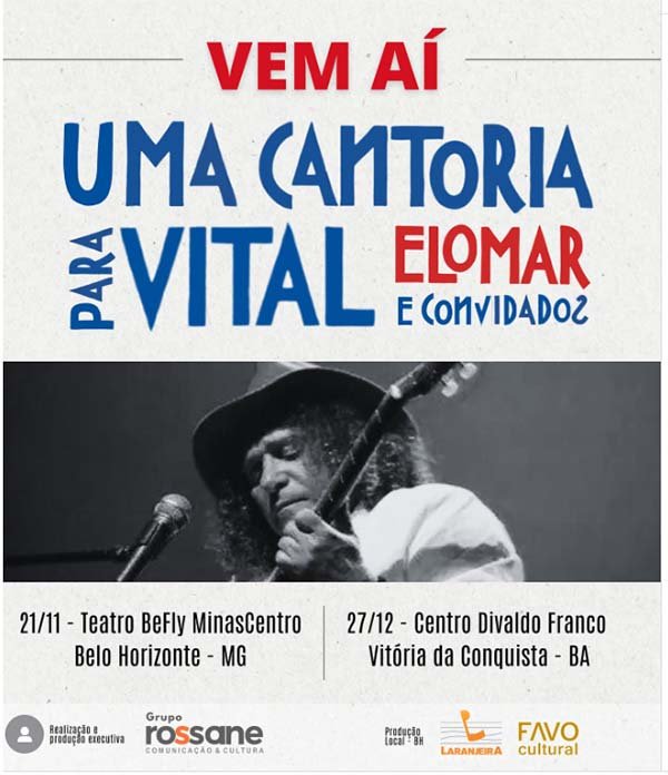 📍Elomar convida! Sabemos que artistas e outros cantadores de todos os cantos do Brasil querem fazer essa linda homenagem ao Mestre Vital, alternando-se em várias cidades.