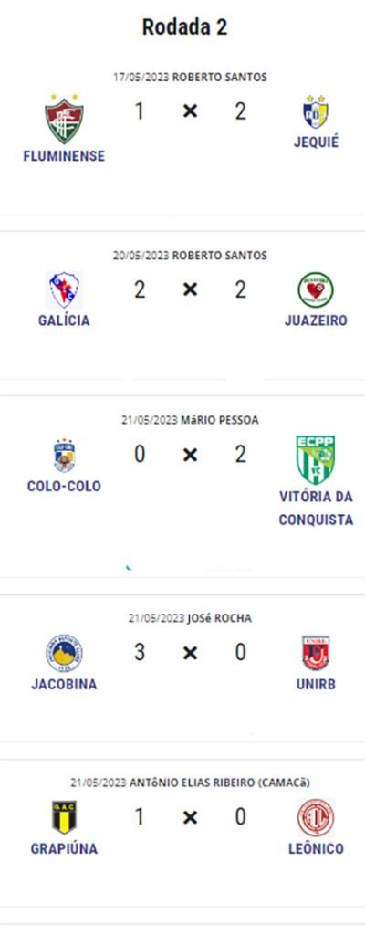 Com esse e os demais resultados da rodada, o Vitória da Conquista alcança a terceira colocação na tabela com 4 pontos. Confira os resultados da segunda rodada, iniciada na última quarta-feira: